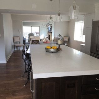 - Installing the flooring, lighting, backsplashes, and new appliances